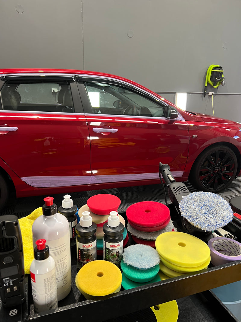 We prep the car for paint correction, Masking up any area’s that need protection.